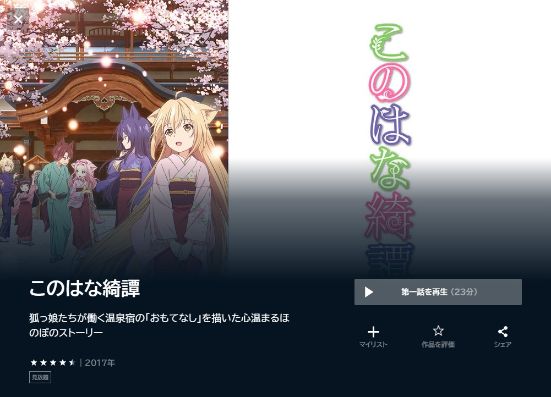 今後、Netflixでアニメ「このはな綺譚」の配信を待つより、U-NEXTでアニメ「このはな綺譚」は全話配信されているので、お試し期間のあるU-NEXTを利用することをおすすめします。