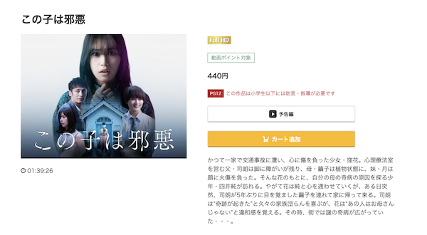 映画「この子は邪悪」は440円でレンタル配信してるので、フルで視聴できます。