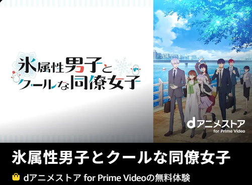 Amazonプライムでアニメ「氷属性男子とクールな同僚女子」をトライアル期間に全話視聴