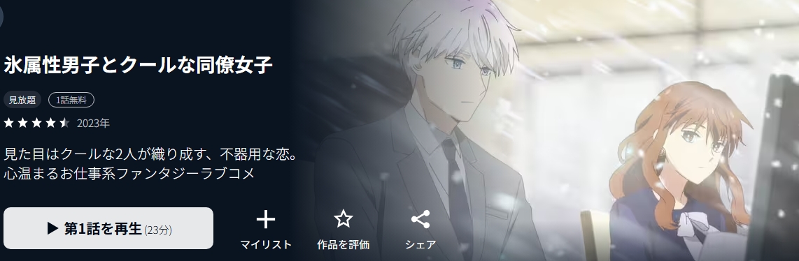 - アニメ「氷属性男子とクールな同僚女子」の関連動画も視聴可能。