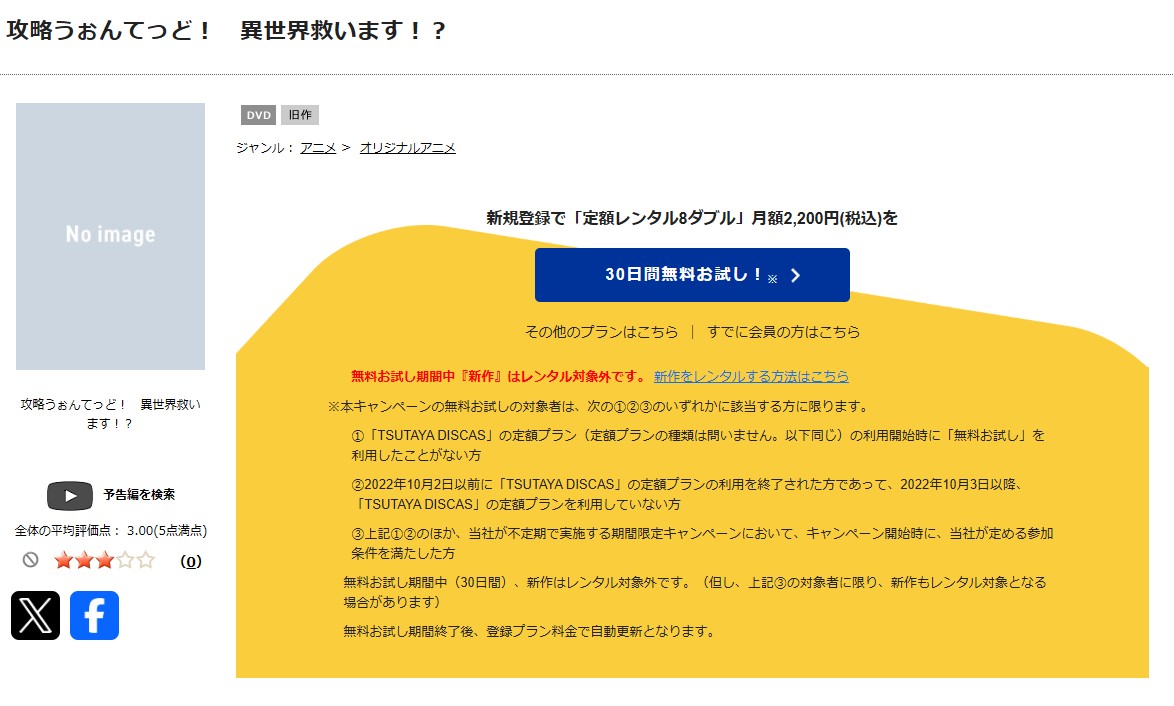 TSUTAYA DISCASで「攻略うぉんてっど!~異世界救います!?」のDVDを全話視聴
