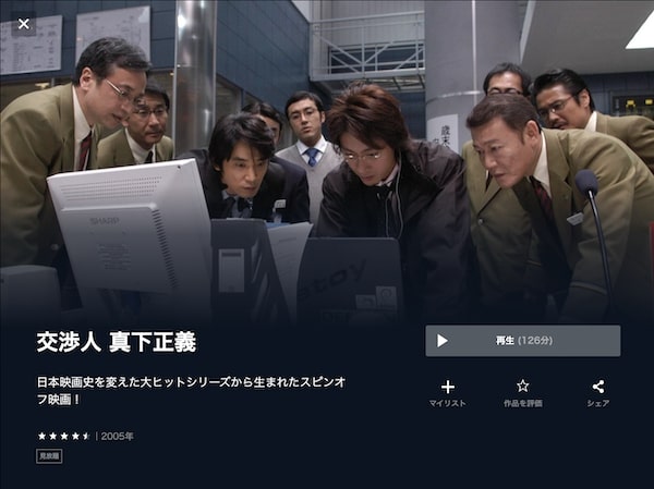ただ、映画「交渉人 真下正義」の関連作品の映画は配信しているので、見放題で視聴は可能です。