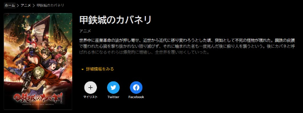 ただ、アニメ「甲鉄城のカバネリ」の関連作品やシリーズ作品は配信しているので、有料となってしまいますが見放題で視聴は可能です。