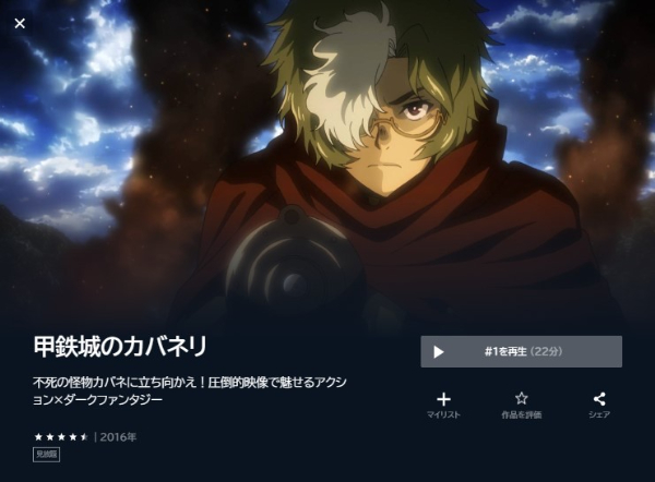 今後、Netflixでアニメ「甲鉄城のカバネリ」の配信を待つより、U-NEXTでアニメ「甲鉄城のカバネリ」は全話配信されているので、お試し期間のあるU-NEXTを利用することをおすすめします。