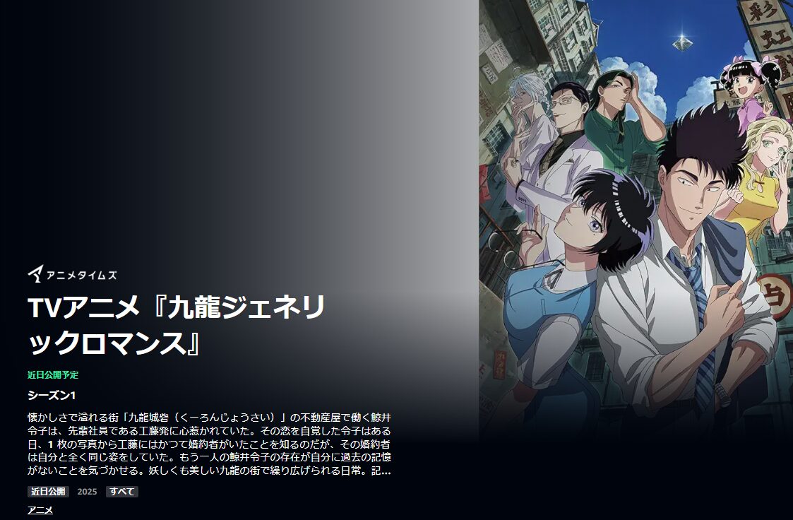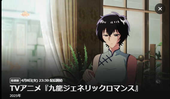 2025年4月5日(土)23:00から新しくスタートするアニメ「九龍ジェネリックロマンス」の動画を無料トライアルで全話視聴できる配信サイトを紹介します。