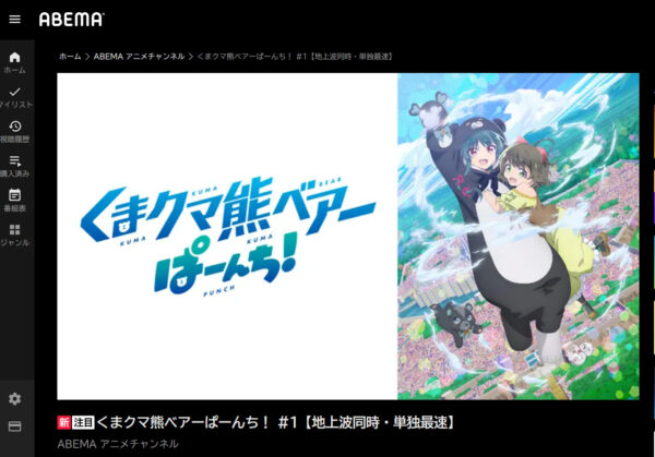 また、ABEMAは独自のオリジナル動画やコンテンツがあり、アニメ「くまクマ熊ベアーぱーんち!2期」以外も視聴できます。