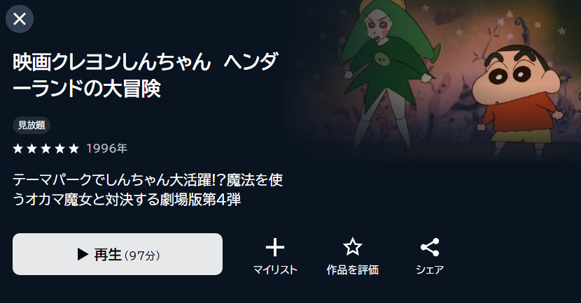 - 映画「クレヨンしんちゃん ヘンダーランドの大冒険」がフル視聴可能。