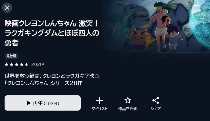 - 映画「クレヨンしんちゃん 激突! ラクガキングダムとほぼ四人の勇者」がフル視聴可能。