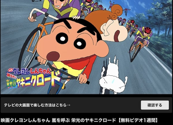 スマホではなく、テレビや大きな画面で「クレヨンしんちゃん 嵐を呼ぶ 栄光のヤキニクロード」の映画をフルで視聴したい!楽しみたいという方にはおすすめです。