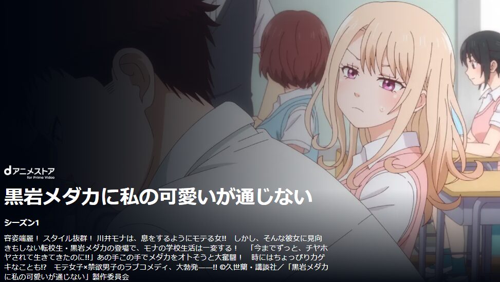 人気の動画配信サイトAmazonプライムでも、アニメ「黒岩メダカに私の可愛いが通じない」を視聴できるか調査しました。