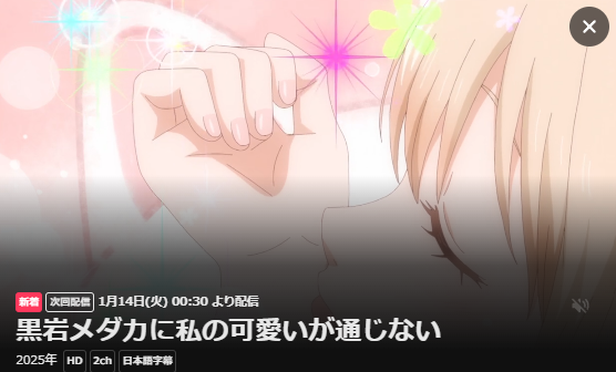 アニメ「黒岩メダカに私の可愛いが通じない」が全話無料視聴できる動画配信サイトを調査しました。