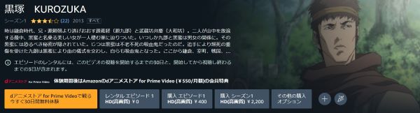 人気の動画配信サイトAmazonプライムでも、アニメ「黒塚 KUROZUKA」を視聴できるか調査しました。