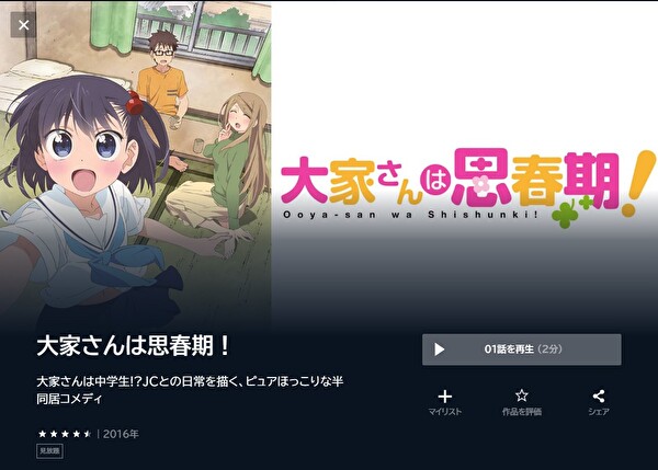 U-NEXTでアニメ「大家さんは思春期!」の動画を無料トライアルで全話視聴