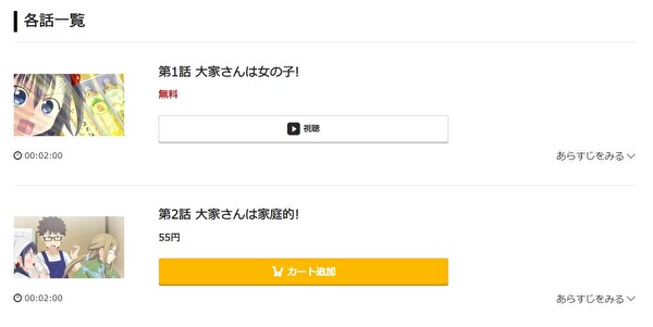 「大家さんは思春期!」のアニメのレンタル料金は1話55円です。