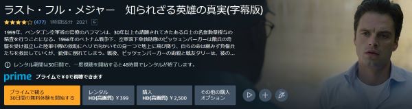 Amazonプライムビデオは、30日間のお試し無料期間があり「ラスト・フル・メジャー 知られざる英雄の真実」の映画をフルで視聴することができます。
