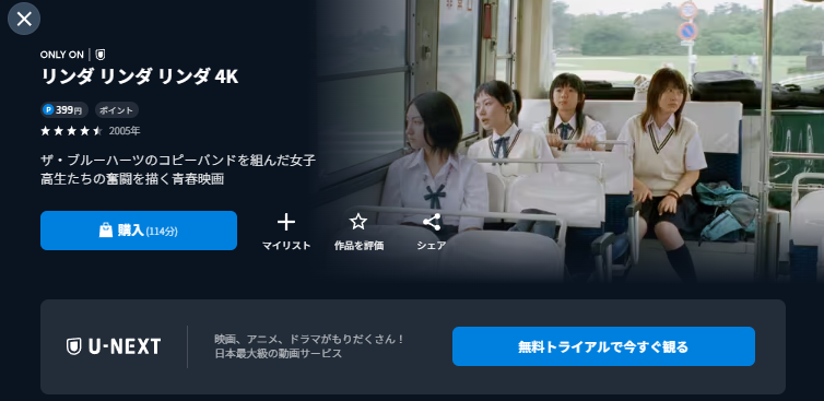 しかもU-NEXTでは再上映された『リンダ リンダ リンダ 4K』が配信されている唯一の配信サイトとなっています!