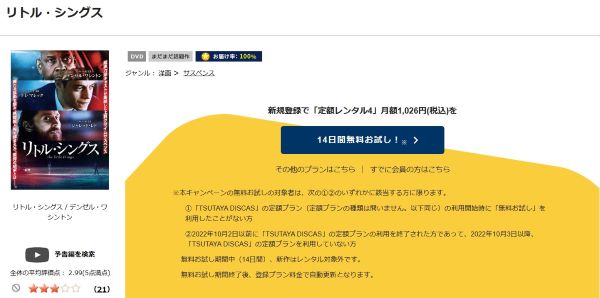 そして、映画「リトル・シングス」はツタヤディスカスで配信しているので、無料でDVDレンタルが可能です。