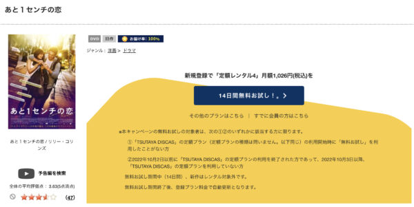 そして、映画「あと1センチの恋」はツタヤディスカスで配信しているので、無料でDVDレンタルが可能です。