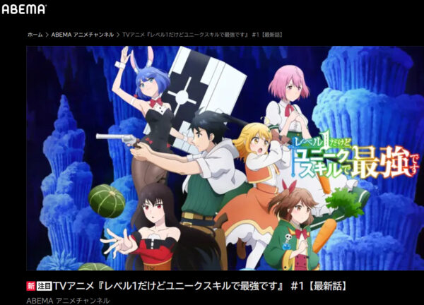 - ABEMAにてアニメ「レベル1だけどユニークスキルで最強です」の1話が無料配信しております!