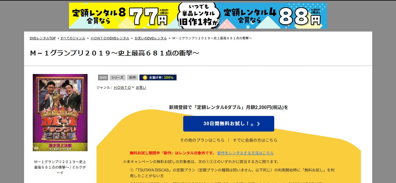 TSUTAYA DISCASでバラエティ番組「M-1グランプリ2019」のDVDを視聴