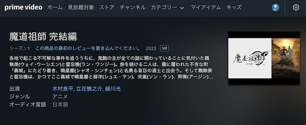 人気の動画配信サイトAmazonプライムでも、アニメ「魔道祖師 完結編(日本語吹替版)」を視聴できるか調査しました。