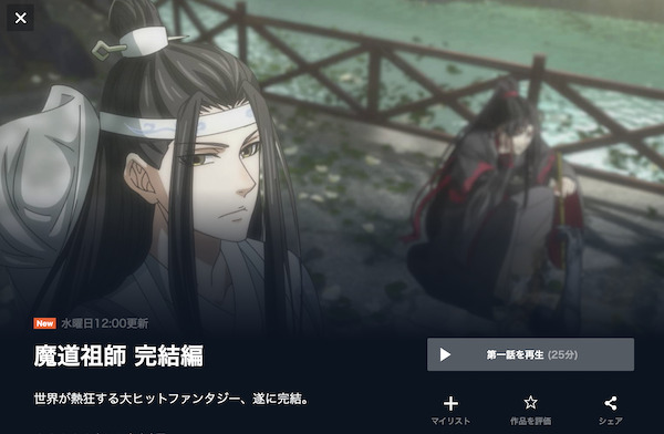 Netflixでアニメ「魔道祖師 完結編(日本語吹替版)」の動画の配信予定