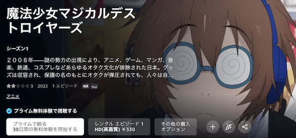 人気の動画配信サイトAmazonプライムでも、アニメ「魔法少女マジカルデストロイヤーズ」を視聴できるか調査しました。