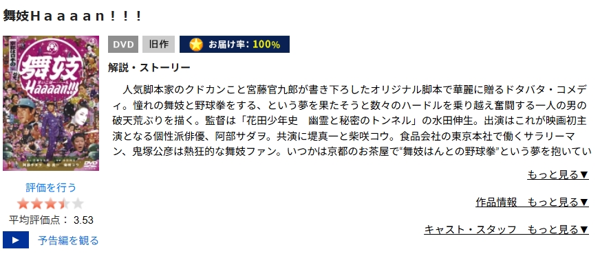 映画「舞妓Haaaan!!!」は旧作なので、DVDレンタルすればフル視聴が可能です。