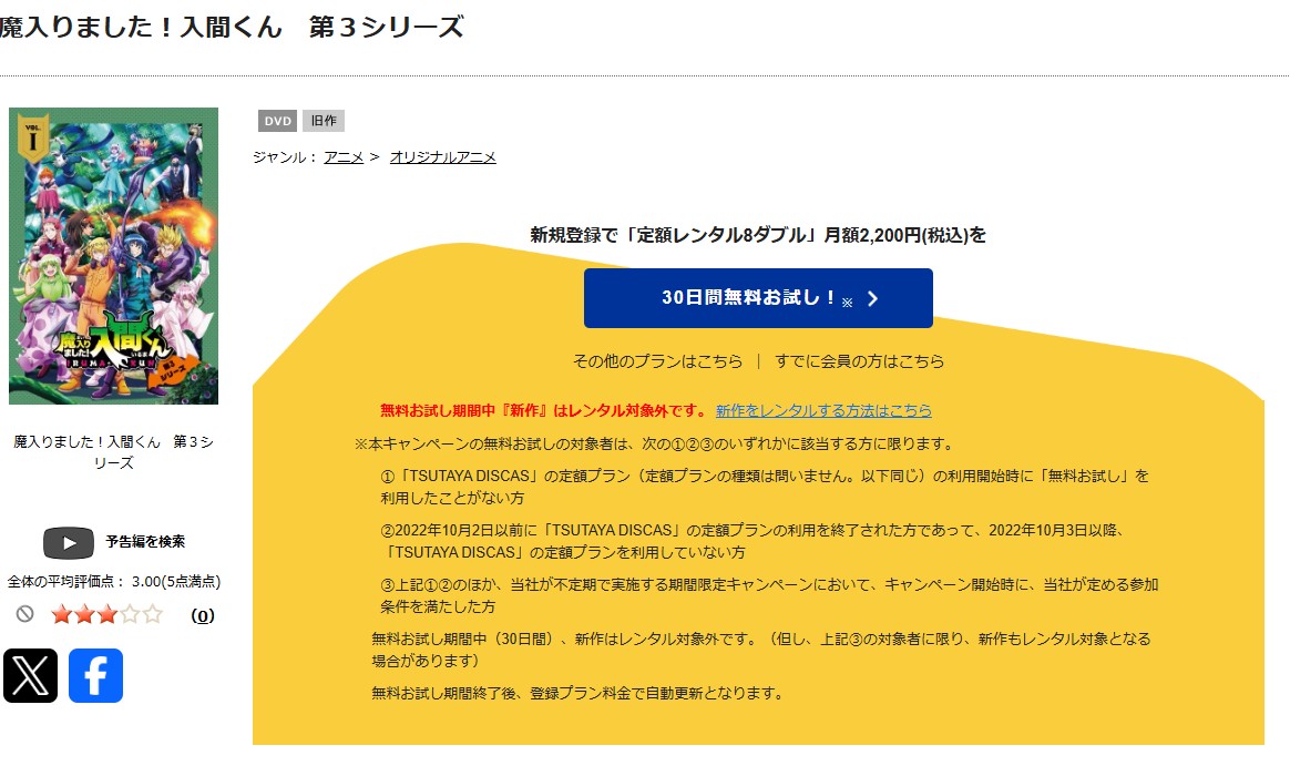 TSUTAYA DISCASで「魔入りました!入間くん(3期)」のDVDを全話視聴