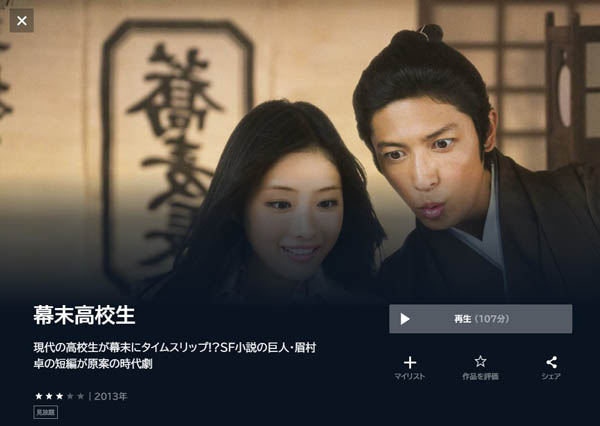 Amazonプライムビデオで映画「幕末高校生」をフルで無料視聴