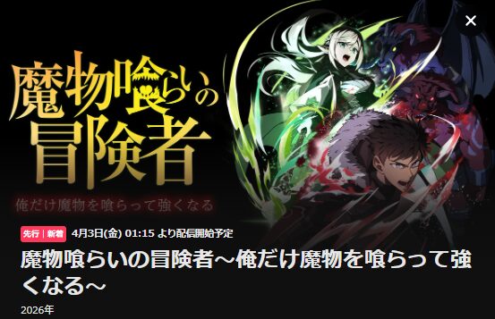• 「魔物喰らいの冒険者~俺だけ魔物を喰らって強くなる~」の先行配信はいつ?