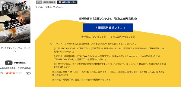 そして、映画「マークスマン」はツタヤディスカスで配信しているので、無料でDVDレンタルが可能です。