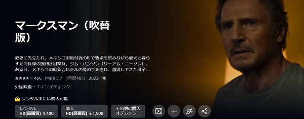 しかし、映画「マークスマン」はレンタル作品のため、400円かかってしまい無料視聴することができません。