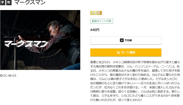 映画「マークスマン」は440円でレンタル配信してるので、フルで視聴できます。