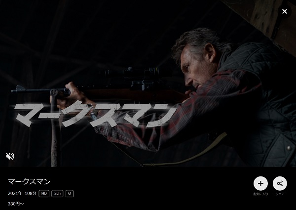 初回お試し期間が14日間あり、映画「マークスマン」の動画も330円でフル視聴することができます。