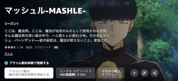 人気の動画配信サイトAmazonプライムでも、アニメ「マッシュル-MASHLE-」を視聴できるか調査しました。
