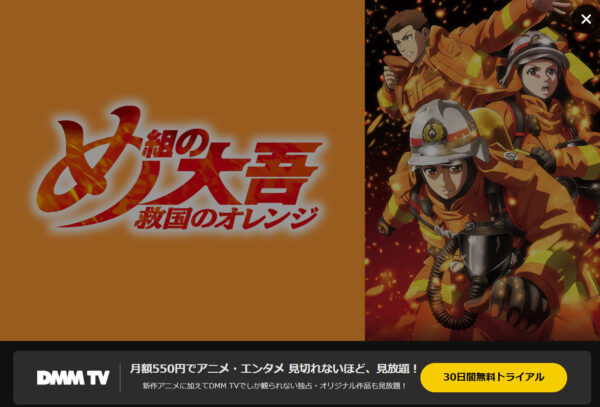 - DMMTVにて、アニメ「め組の大吾 救国のオレンジ」の1話が無料で視聴できます。