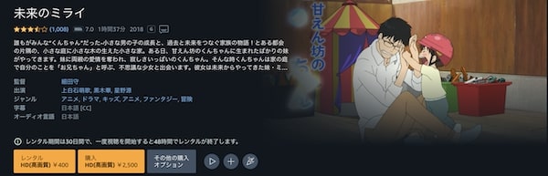 Amazonプライムビデオでも映画「未来のミライ」はフルで視聴することができます。