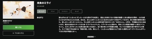 - 映画「未来のミライ」の関連作品も無料視聴