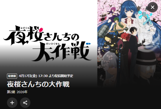 2026年4月12日(日)から放送スタートのアニメ「夜桜さんちの大作戦 第2期」の配信を全話視聴できる動画配信サービスを紹介します。
