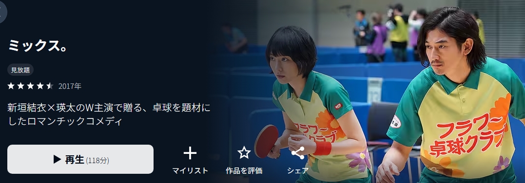 U-NEXTで映画「ミックス。」をトライアル期間にフル視聴