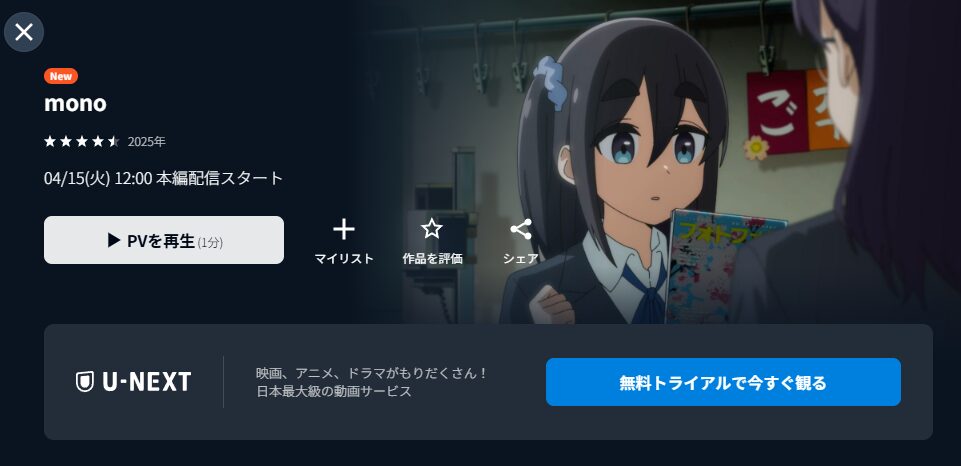 U-NEXTでアニメ「mono」の動画を無料トライアルで全話視聴