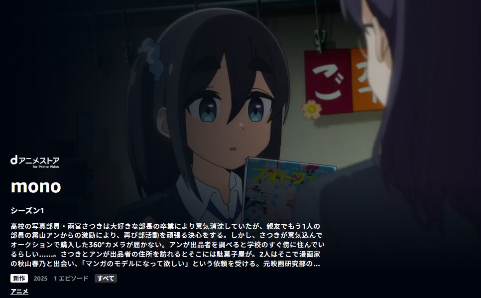 Amazonプライムでアニメ「mono」の動画を全話無料視聴