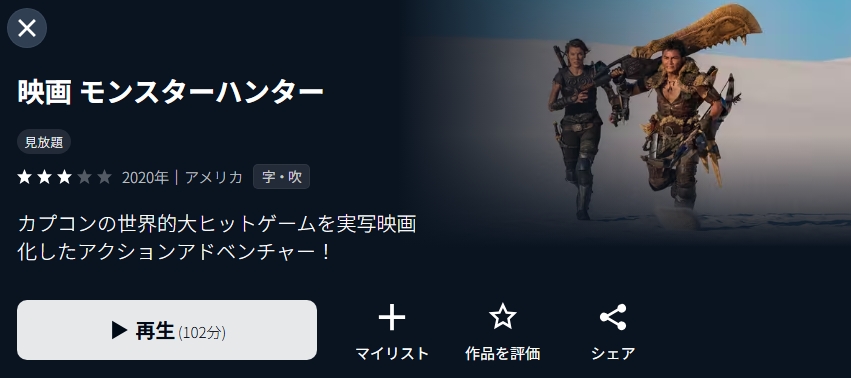 U-NEXTで映画「モンスターハンター」の動画を無料トライアルでフル視聴