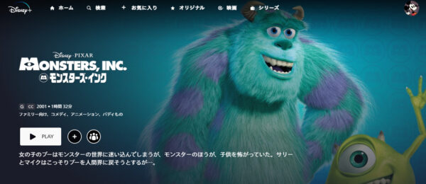 ただ、映画「モンスターズ・インク」の動画は視聴できないので、モンスターズ・インクを見たい場合はディズニープラスをお試しください。