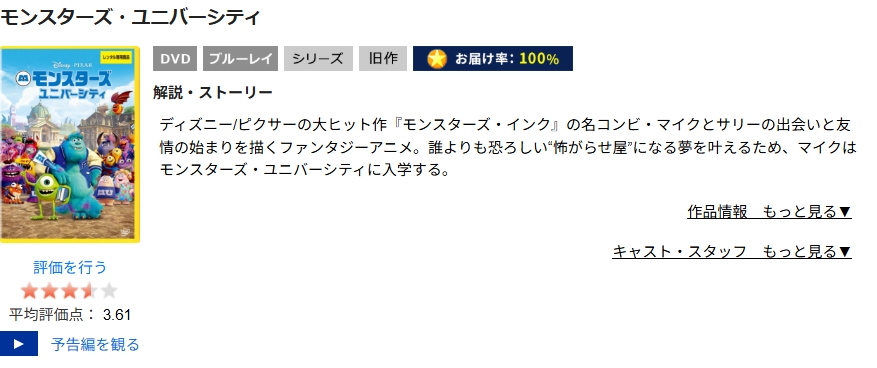 このDVDレンタルサービスを使うことで、DVDを自宅に取り寄せて、映画「モンスターズ・ユニバーシティ」を視聴可能です。