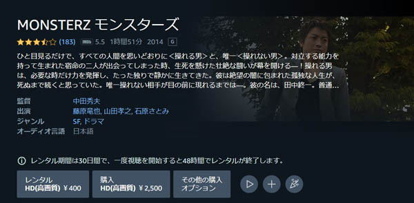 映画「MONSTERZ モンスターズ」はAmazonプライムビデオでもフルで視聴することができます。
