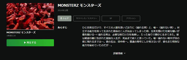 また、「MONSTERZ モンスターズ」の映画の関連作品も見放題でフル視聴できます。