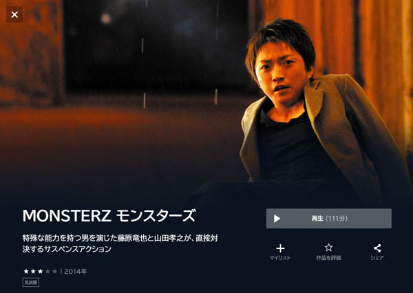 「MONSTERZ モンスターズ」の映画は、ツタヤディスカスにて、旧作で配信してるので無料で見ることができますよ。