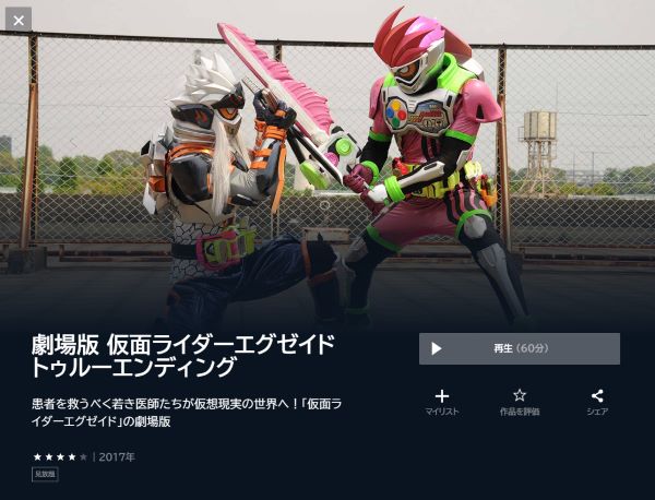 - 映画「劇場版 仮面ライダーエグゼイド トゥルー・エンディング」がフルで無料視聴。